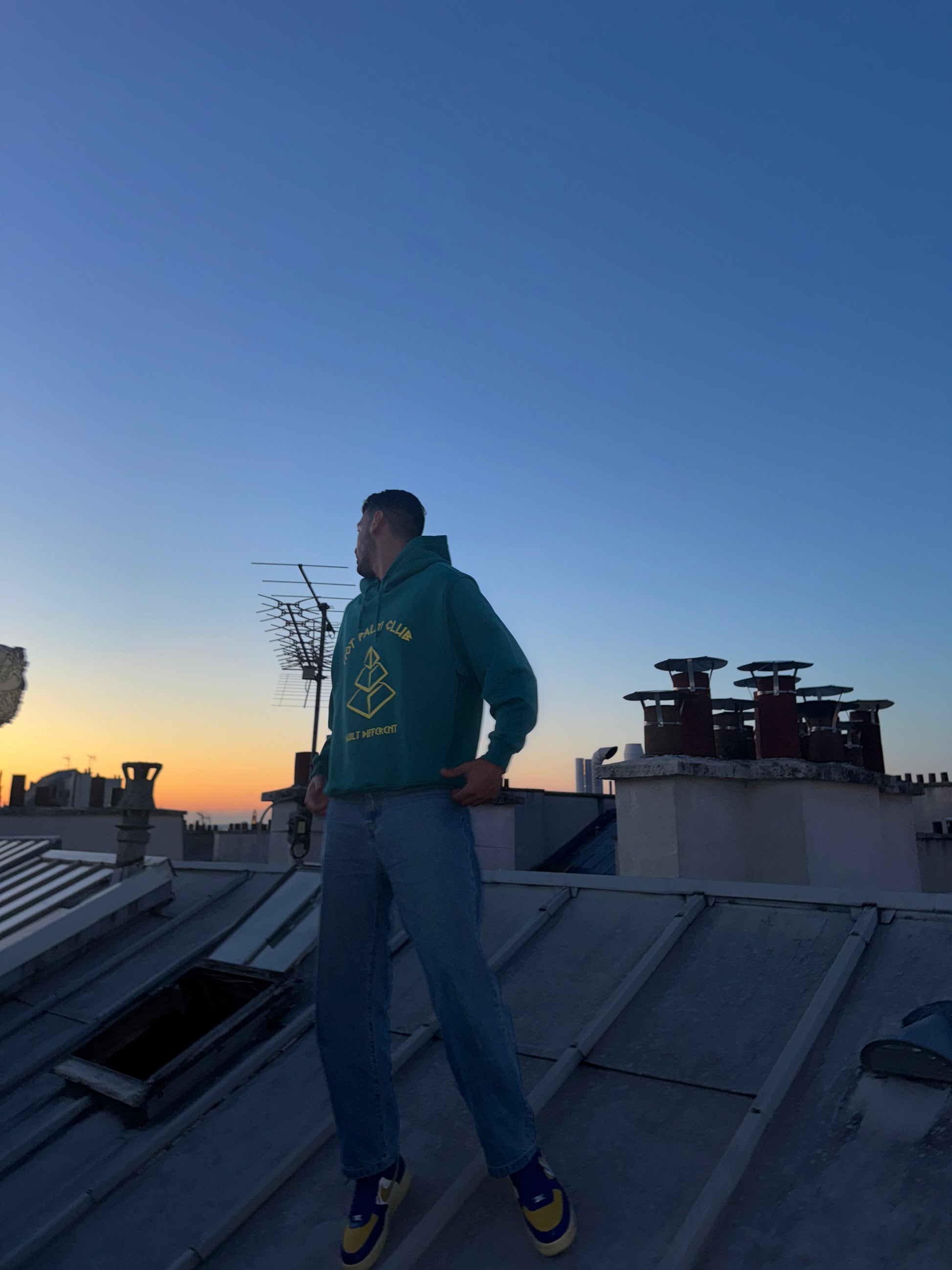 The Built Different hoodie merges comfort and character in a heavyweight, eco-certified cotton blend.
